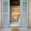 - Salotto arredato con mobili di design. Dispone di un divano letto matrimoniale King Size e di una smart TV. Da qui, avete accesso diretto al cortile interno del palazzo.
