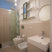 ▸ Bagno contemporaneo con doccia, bidet, asciugacapelli e lavatrice.