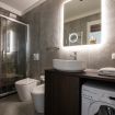 - Bagno moderno: con doccia, bidet, specchio retroilluminato e lavatrice.