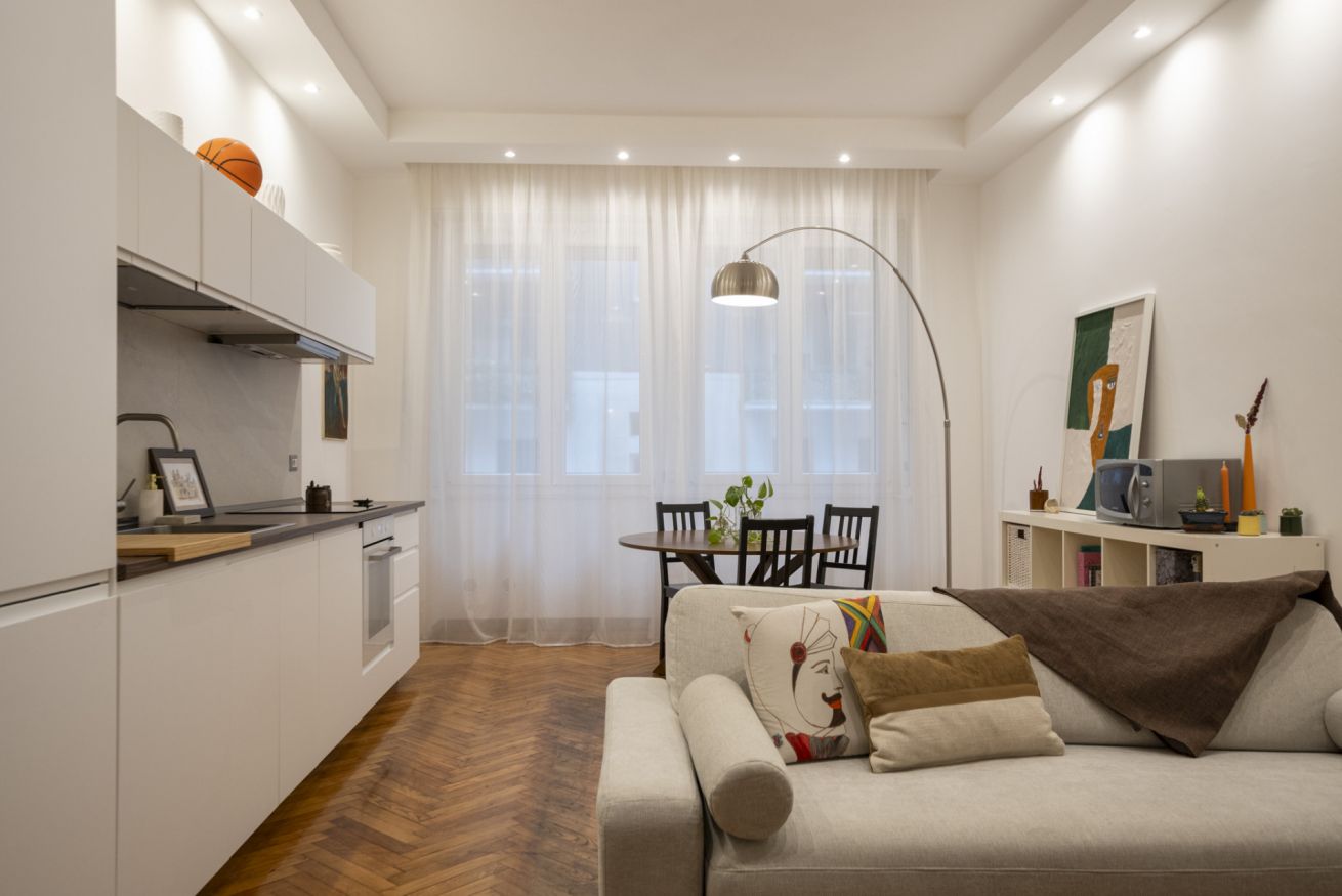 Sant’Agostino Design Apartment è un elegante bilocale di 67 m² al piano rialzato, situato ia pochi passi dalla metro Sant’Agostino, dai Navigli e dal Tortona Design District. Un appartamento molto curato e silenzioso, dotato di finiture di pregio e arredi di design, e pensato per offrire comfort, stile e un’atmosfera raffinata. Ideale per soggiorni business o leisure, può ospitare fino a 4 persone.